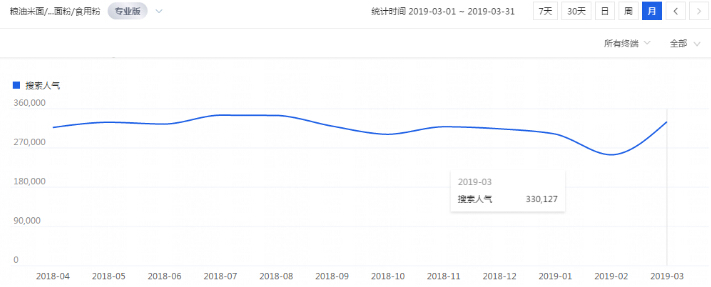 天猫代运营今天拿食品类目来给大家讲解下,产品是豌豆淀粉,主要是用来做凉粉的。从市场行情可以看出豌豆淀粉的旺季就是夏季,整个市场从转过年回来就开始热起来,市场最热的时候就是七八月份温度最高的时候。
