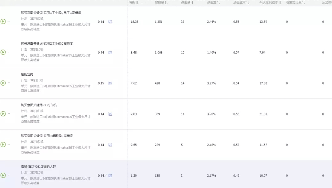 先说一下定向,前面随笔我说过了,定向实际上也是搜索,只是现在的定向是由新的流量渠道构成,莫莫拿一个3D打印机类目来说明一下。