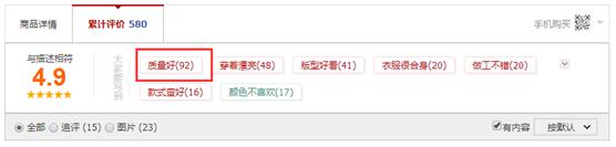 另外,还有很重要的一点:你必须明确消费者在购买某一类商品时,最关注的点应该是什么,因为他们关注的肯定是他们想看到的,他们想看到的就是你在详情页当中应该重点去突出的。这个其实很好搞定,你只需要找到你最直接的竞争对手,卖的最好的,然后去查看他们的累计评价详情。